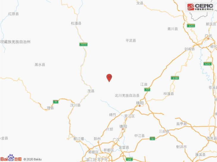 震中距北川羌族自治縣14公里、距茂縣35公里、距安州區(qū)51公里、距江油市53公里、距綿竹市56公里,距綿陽市64公里,距成都市133公里。