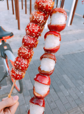 冰糖葫蘆是季節(jié)性食品,原因是山楂成熟在深秋,從十月下旬到來年暮春,可以買到。而且在制作上,冰糖遇到高氣溫很容易溶化了,所以現(xiàn)在的冬末時(shí)令,正是吃冰糖葫蘆的好時(shí)節(jié)。