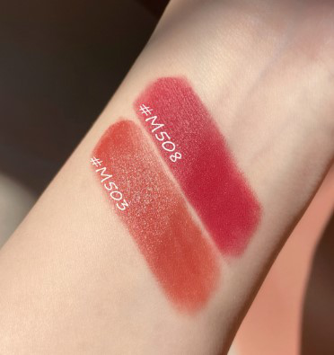 這幾個(gè)顏色,我個(gè)人是比較喜歡的色號(hào),一個(gè)是503,一個(gè)是508。503氣質(zhì)掛的一只,上妝涂就是溫柔可人無攻擊性的鄰家女孩真踏馬好看,怎么涂都好看,素顏薄涂化妝厚涂,都可以。