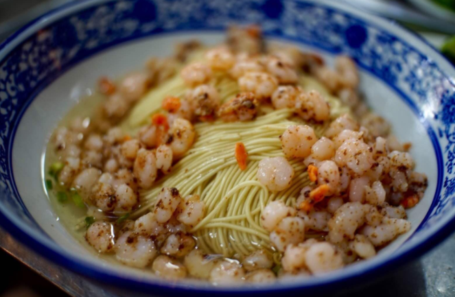 三蝦面,就是把蝦子、蝦腦、蝦仁三種蝦身上最好的東西,經(jīng)過(guò)烹飪,作成澆頭,其制作過(guò)程很繁瑣,味道真是鮮得眉毛掉下來(lái)。在蘇式湯面中,三蝦面屬于比較高大上的吃法,每年夏天的時(shí)候上市,僅有限的幾個(gè)面館供應(yīng)(如裕興記),而且價(jià)格不菲。