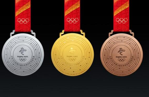 冬奧會獎牌正面中心刻有奧林匹克五環(huán)標志,周圍刻有北京2022年冬奧會英文全稱(XXIV Olympic Winter Games Beijing 2022)字樣。圓環(huán)做打凹處理。
