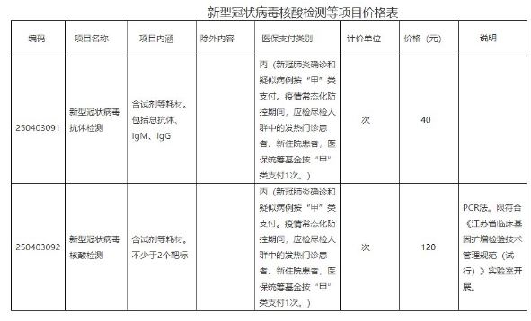 新型冠狀病毒抗體檢測(包括總抗體、IgM、IgG)價格為 40 元 / 項;